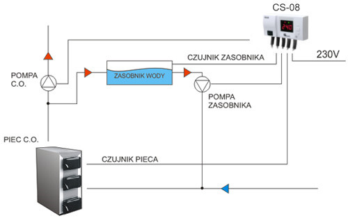 Sterownik CS-08.NEW.WIFI jest przeznaczony do sterowania pompami C.O. oraz C.W.U.