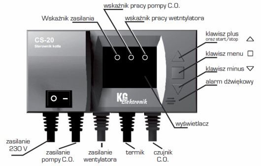 Sterownik CS-20 steruje pompą C.O. oraz wentylatorem nadmuchowym. Przeznaczony jest do sterowania kotłami na paliwo stałe: drewno, węgiel, miał. Użytkownik ma do wyboru 5 wersji trybów pracy sterownika uwarunkowanych rodzajem opału oraz typem kotła. Pierwszą czynnoość, jaką musi wykonać użytkownik przed rozpoczęciem eksploatacji sterownika jest ustawienie temperatury pieca, jaką ma utrzymywać sterownik podczas pracy kotła oraz wybrać tryb pracy sterownika w menu: