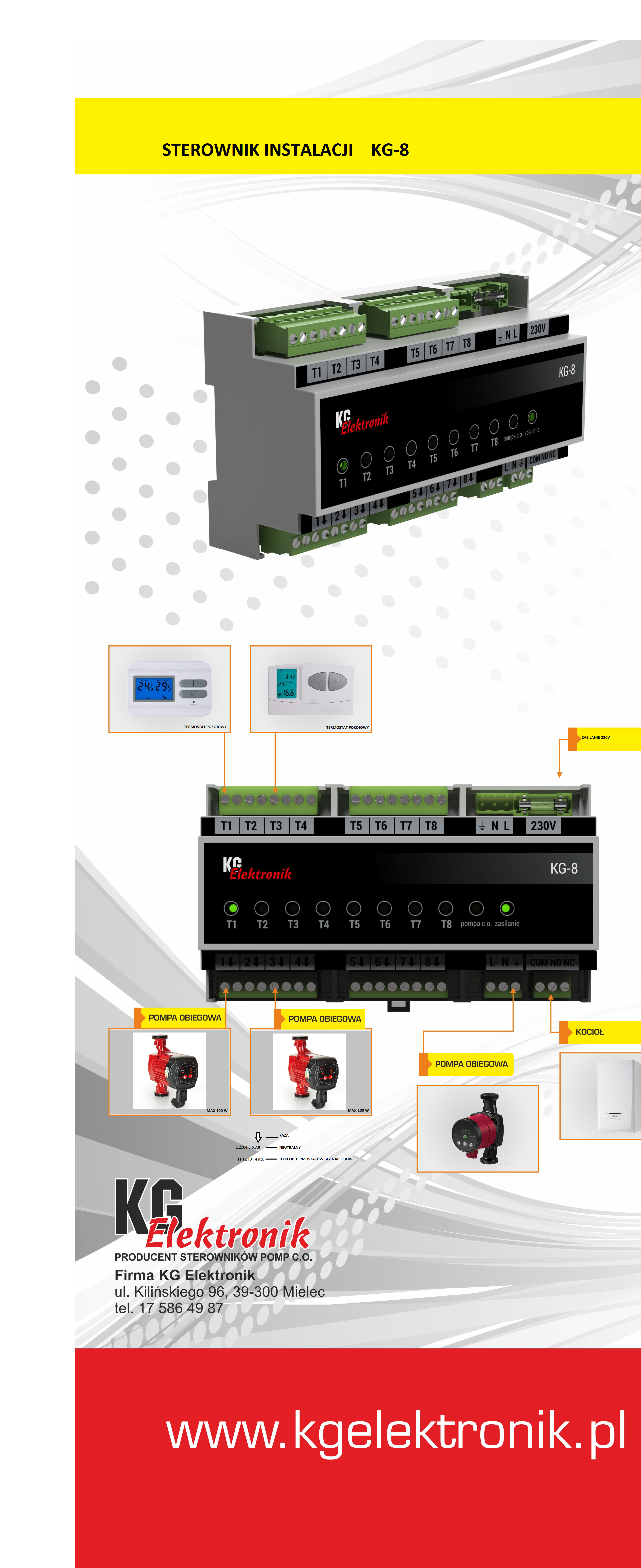 Sterownik instalacji KG-8 to przewodowy sterownik na 8 stref grzewczych.