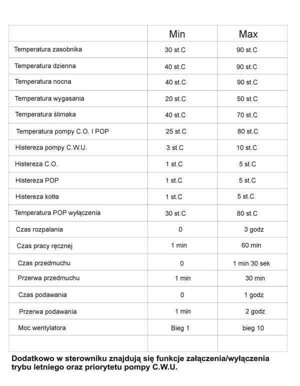 Dodatkowo posiada alarm dźwiękowy sygnalizujący zbyt wysoką temperaturę na kotle (powyżej 90 st C).