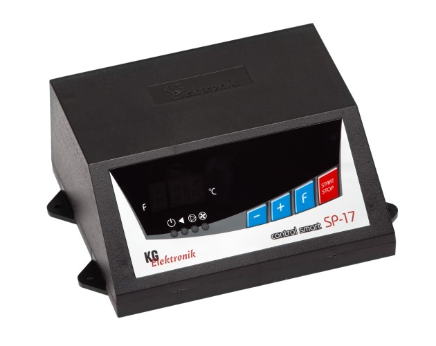 Sterownik SP-17 smart control przystosowany jest do sterowania pompą C.O., C.W.U. oraz wentylatorem nadmuchowym. Przeznaczony jest do sterowania kotłami na paliwa stałe - drewno, węgiel, miał. Sterownik cechuje prosta intuicyjna obsługa. Jedyną czynność, jaką musi wykonać użytkownik przed rozpoczęciem eksploatacji sterownika, jest ustawienie temperatury pieca, jaką ma utrzymywać sterownik podczas pracy kotła, oraz wybrać tryb pracy sterownika w menu (F). W menu sterownika użytkownik ma do wyboru cztery funkcje, do których przypisany jest rodzaj opału.